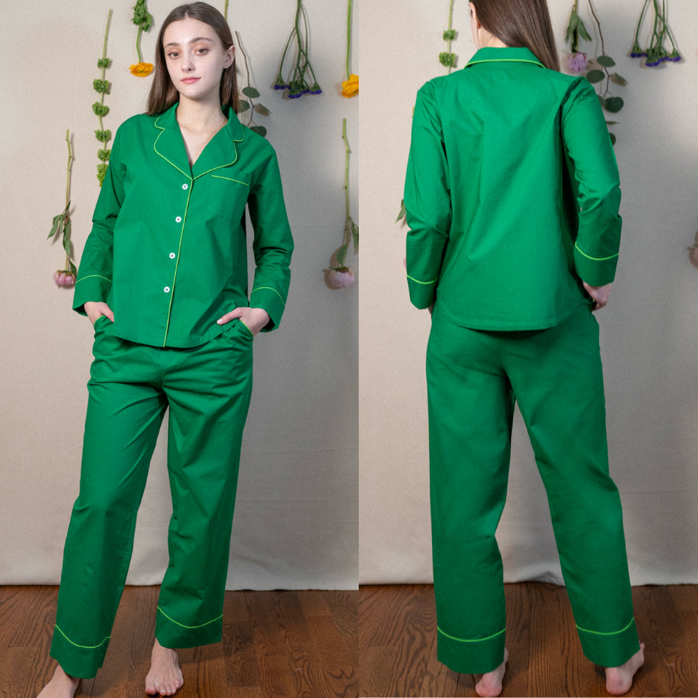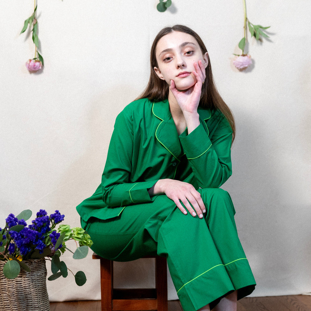 Lounge like the goddess you are in pajamas that are more than just fabulous-looking—they feel like a little love note to yourself. These bold, joy-splashed jammies are made from breezy organic cotton poplin with a vibrant pattern that's screen-printed by hand, so every set is as unique as you. Peek inside and you’ll find a hidden affirmation stitched into the tag (like "I am enough" or "I am radiant"), giving you a quiet boost with every wear. Oh, and yes—they have pockets. Major win. Wrapped up with a matching fabric pouch and scrunchie, this set makes a standout gift for anyone who deserves to feel radiant. (That includes you.)
