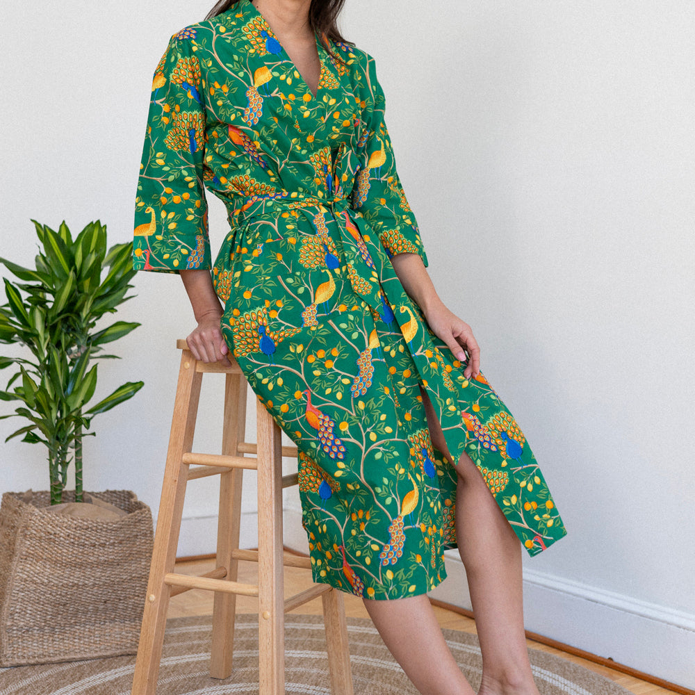 Beauty is a powerful mood enhancer. This bold, joy-splashed robe is made from breezy organic cotton poplin with a vibrant pattern that's screen-printed by hand, so every robe is as unique as you. Peek inside and you’ll find a hidden affirmation stitched into the tag (like "I am enough" or "I am radiant"), giving you a quiet boost with every wear. Oh, and yes—they have pockets. Major win. Wrapped up with a matching fabric pouch and scrunchie, this robe makes a standout gift for anyone who deserves to feel radiant. (That includes you.)