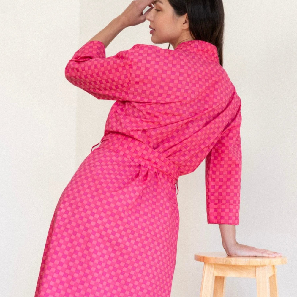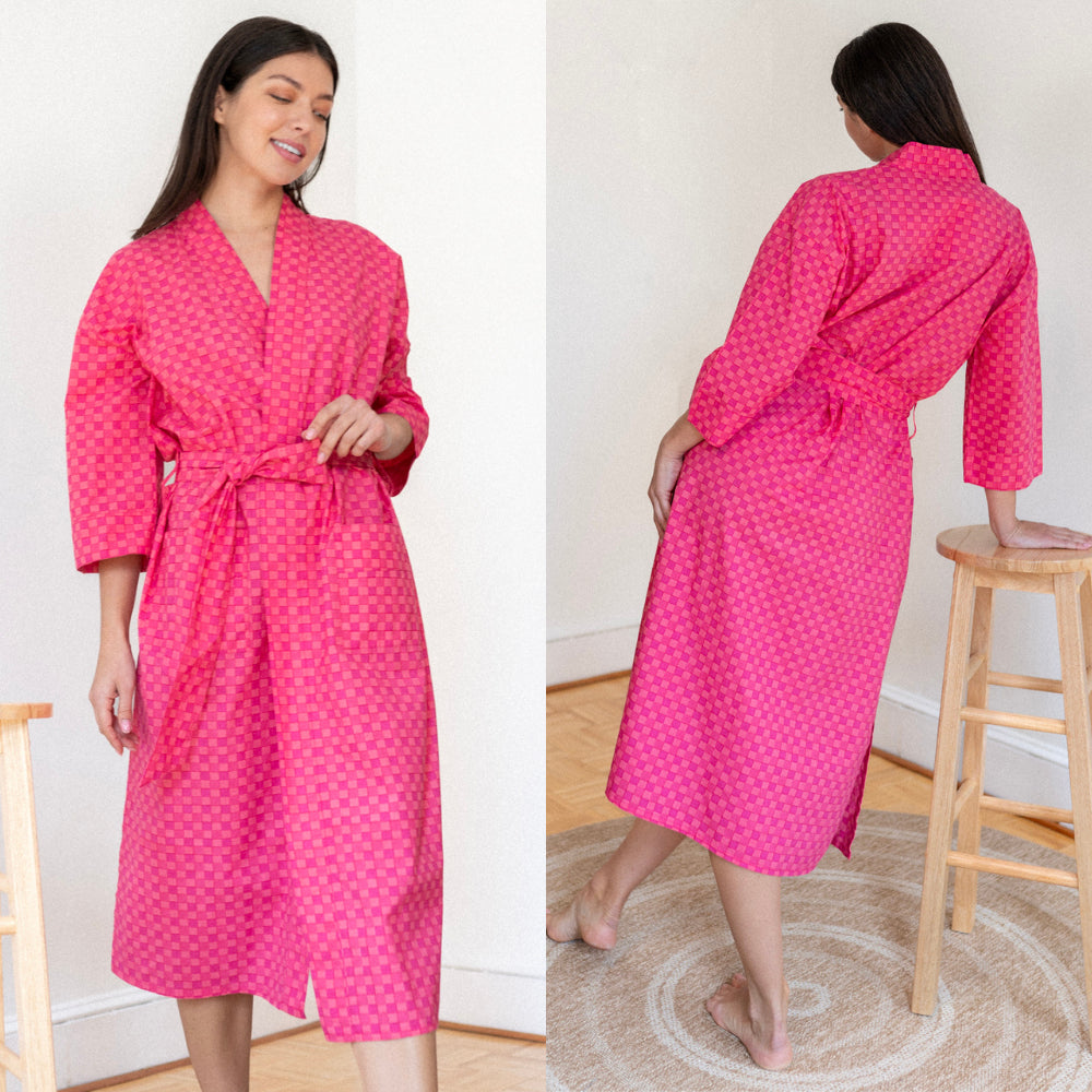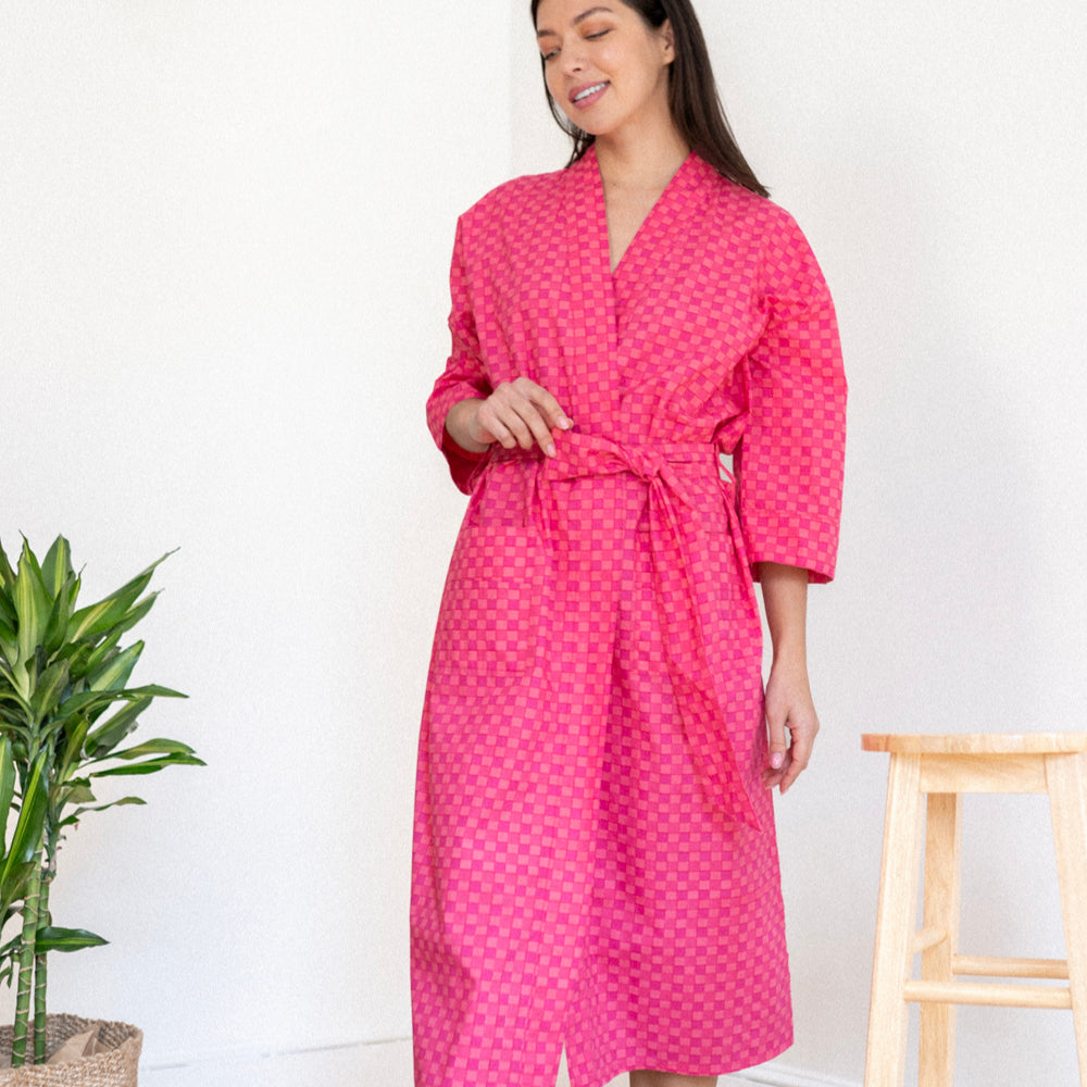 Beauty is a powerful mood enhancer. This bold, joy-splashed robe is made from breezy organic cotton poplin with a vibrant pattern that's screen-printed by hand, so every robe is as unique as you. Peek inside and you’ll find a hidden affirmation stitched into the tag (like "I am enough" or "I am radiant"), giving you a quiet boost with every wear. Oh, and yes—they have pockets. Major win. Wrapped up with a matching fabric pouch and scrunchie, this robe makes a standout gift for anyone who deserves to feel radiant. (That includes you.)