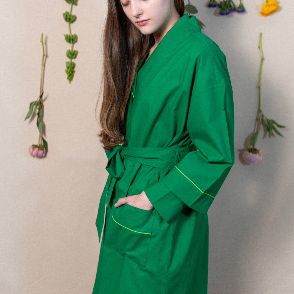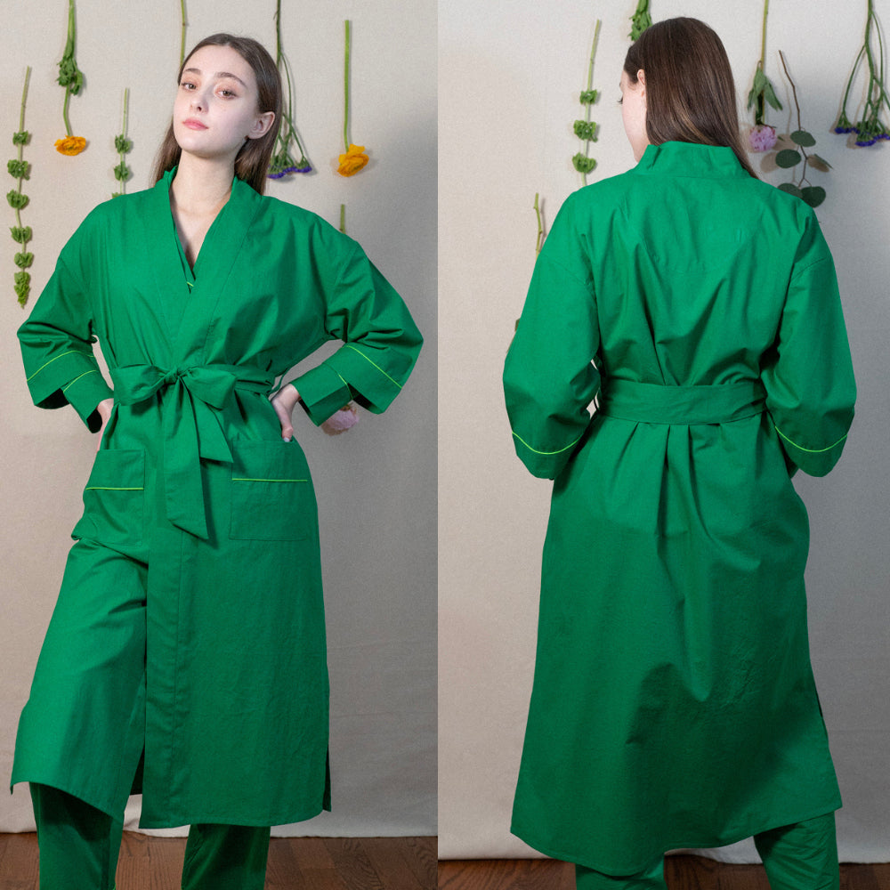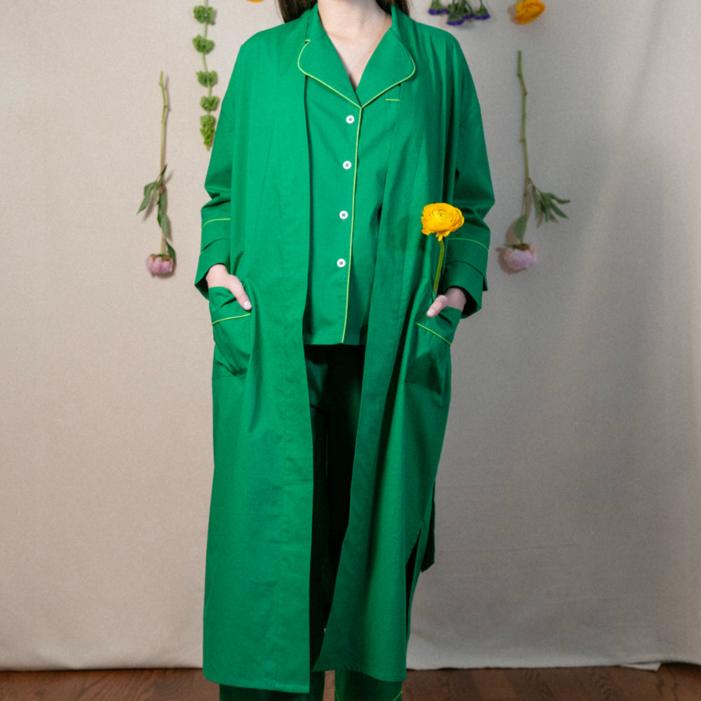 Beauty is a powerful mood enhancer. This bold, joy-splashed robe is made from breezy organic cotton poplin with a vibrant pattern that's screen-printed by hand, so every robe is as unique as you. Peek inside and you’ll find a hidden affirmation stitched into the tag (like "I am enough" or "I am radiant"), giving you a quiet boost with every wear. Oh, and yes—they have pockets. Major win. Wrapped up with a matching fabric pouch and scrunchie, this robe makes a standout gift for anyone who deserves to feel radiant. (That includes you.)