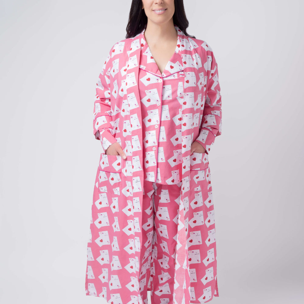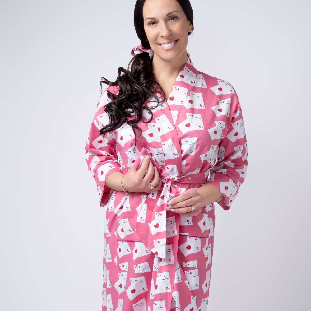 Beauty is a powerful mood enhancer. This bold, joy-splashed robe is made from breezy organic cotton poplin with a vibrant pattern that's screen-printed by hand, so every robe is as unique as you. Peek inside and you’ll find a hidden affirmation stitched into the tag (like "I am enough" or "I am radiant"), giving you a quiet boost with every wear. Oh, and yes—they have pockets. Major win. Wrapped up with a matching fabric pouch and scrunchie, this robe makes a standout gift for anyone who deserves to feel radiant. (That includes you.)