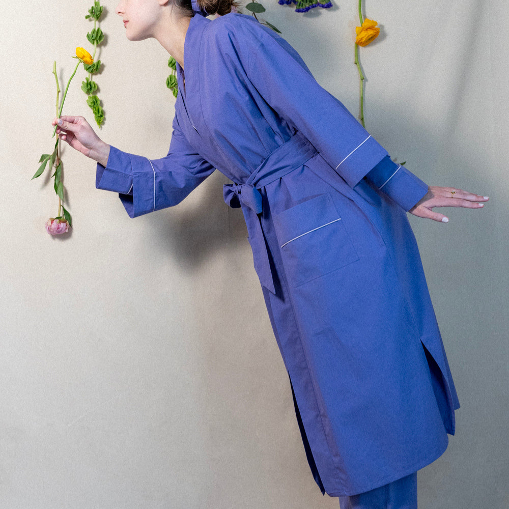 Beauty is a powerful mood enhancer. This bold, joy-splashed robe is made from breezy organic cotton poplin with a vibrant pattern that's screen-printed by hand, so every robe is as unique as you. Peek inside and you’ll find a hidden affirmation stitched into the tag (like "I am enough" or "I am radiant"), giving you a quiet boost with every wear. Oh, and yes—they have pockets. Major win. Wrapped up with a matching fabric pouch and scrunchie, this robe makes a standout gift for anyone who deserves to feel radiant. (That includes you.)