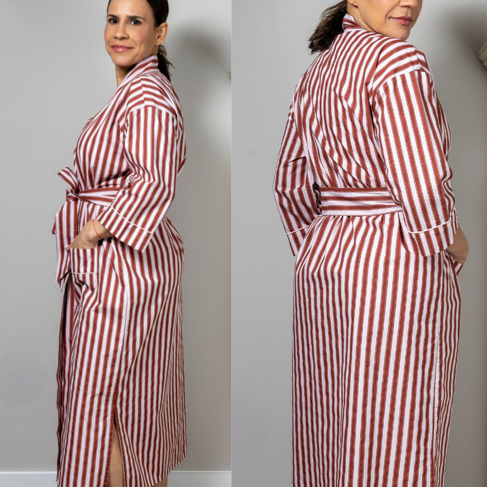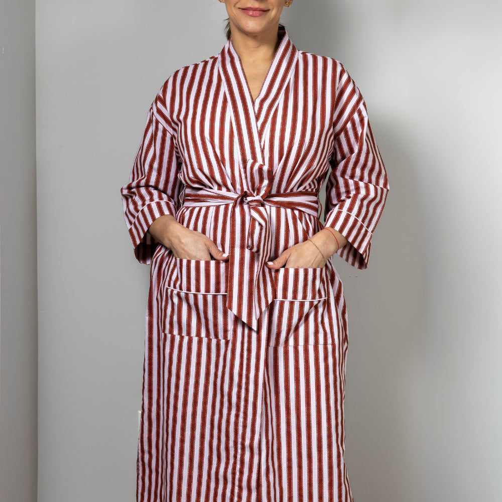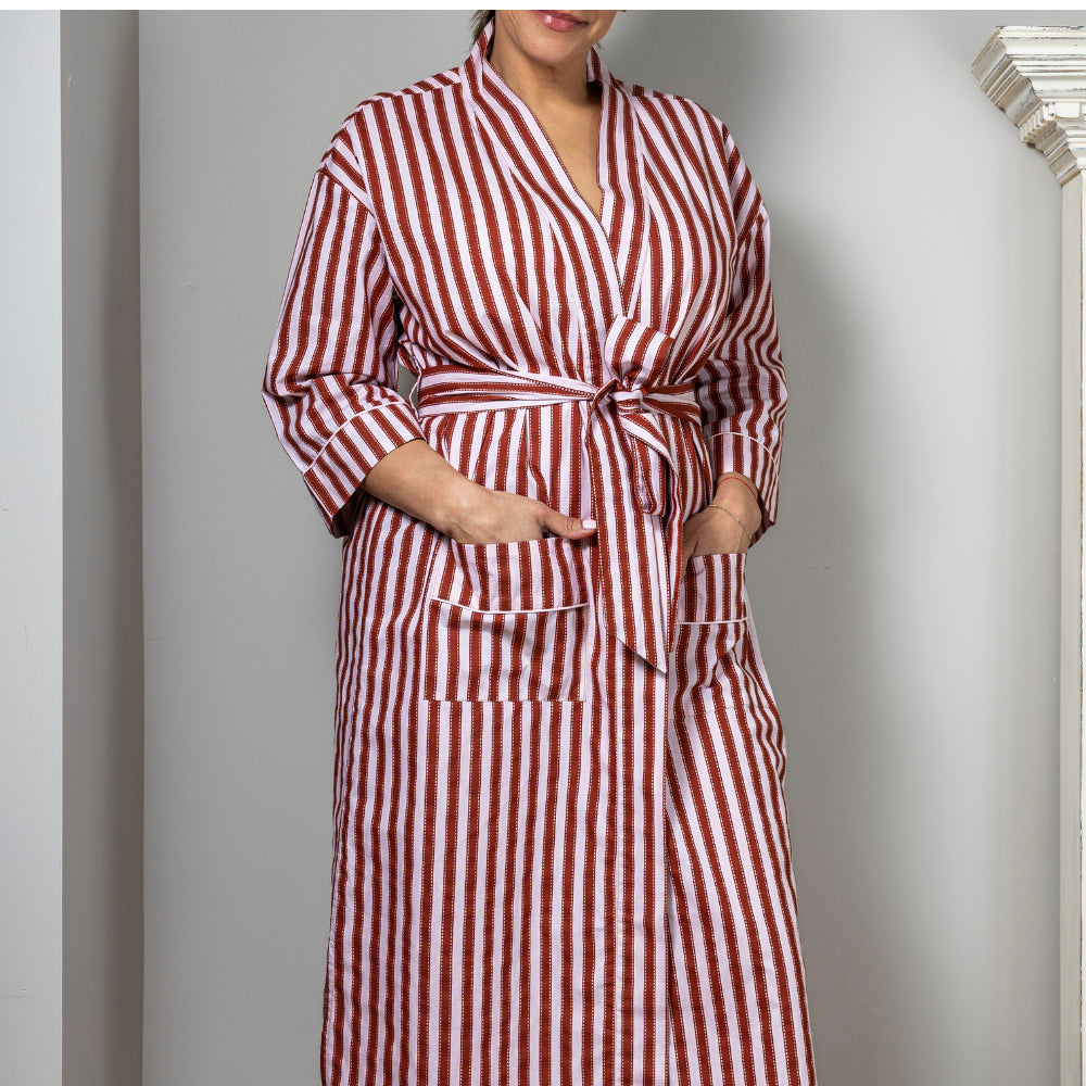 Beauty is a powerful mood enhancer. This bold, joy-splashed robe is made from breezy organic cotton poplin with a vibrant pattern that's screen-printed by hand, so every robe is as unique as you. Peek inside and you’ll find a hidden affirmation stitched into the tag (like "I am enough" or "I am radiant"), giving you a quiet boost with every wear. Oh, and yes—they have pockets. Major win. Wrapped up with a matching fabric pouch and scrunchie, this robe makes a standout gift for anyone who deserves to feel radiant. (That includes you.)