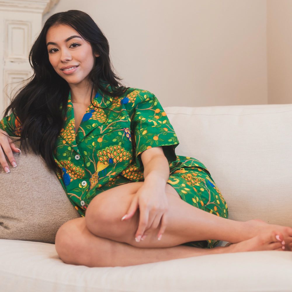 Lounge like the goddess you are in pajamas that are more than just fabulous-looking—they feel like a little love note to yourself. These bold, joy-splashed jammies are made from breezy organic cotton poplin with a vibrant pattern that's screen-printed by hand, so every set is as unique as you. Peek inside and you’ll find a hidden affirmation stitched into the tag (like "I am enough" or "I am radiant"), giving you a quiet boost with every wear. Oh, and yes—they have pockets. Major win. Wrapped up with a matching fabric pouch and scrunchie, this set makes a standout gift for anyone who deserves to feel radiant. (That includes you.)